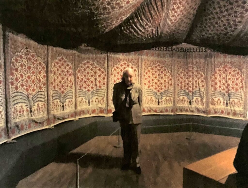 I remember her beautiful house in Ealing, draped with perfectly woven rugs and hangings, and I was lucky to drive her to relevant meetings and exhibitions of textile interest, notably a journey to Reading for a day of dyes and the V&A’s exhibition displaying Tipu’s Sultan’s tent – there was so much to learn, compare and amuse us on these journeys. She was helpful with advice when I tackled the lengthy problem of conserving and researching the pre-Reformation vestment hanging in our village church (‘The Skenfrith Cope and its companions’ ).