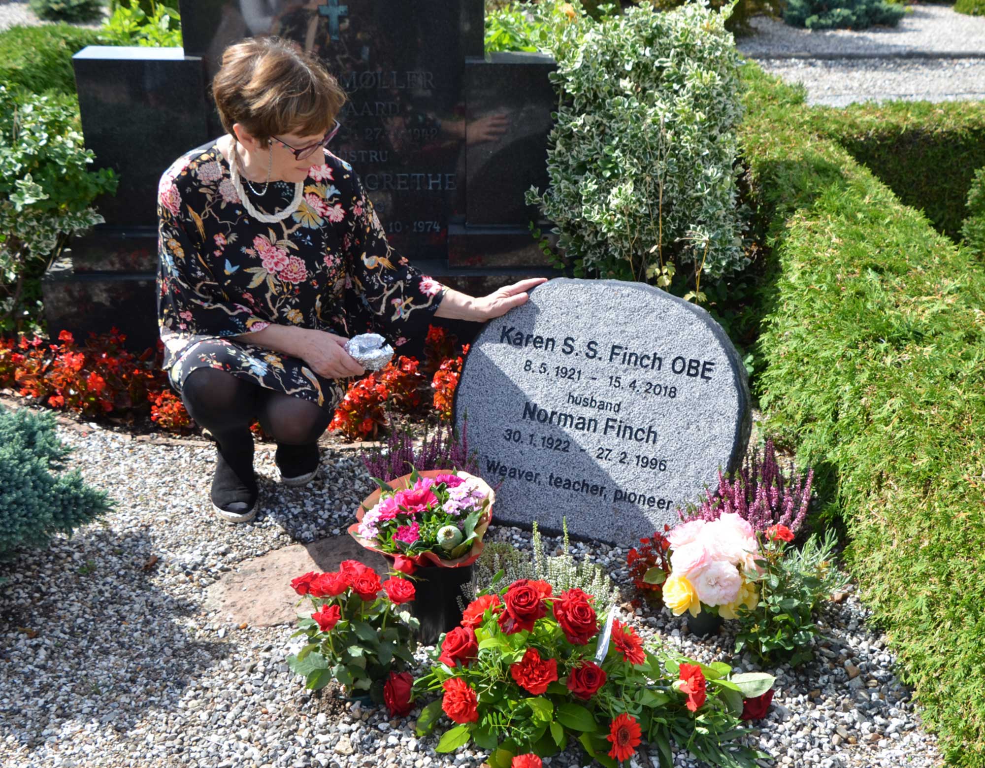 • Katrina at Karen’s gravestone at Rødding church
